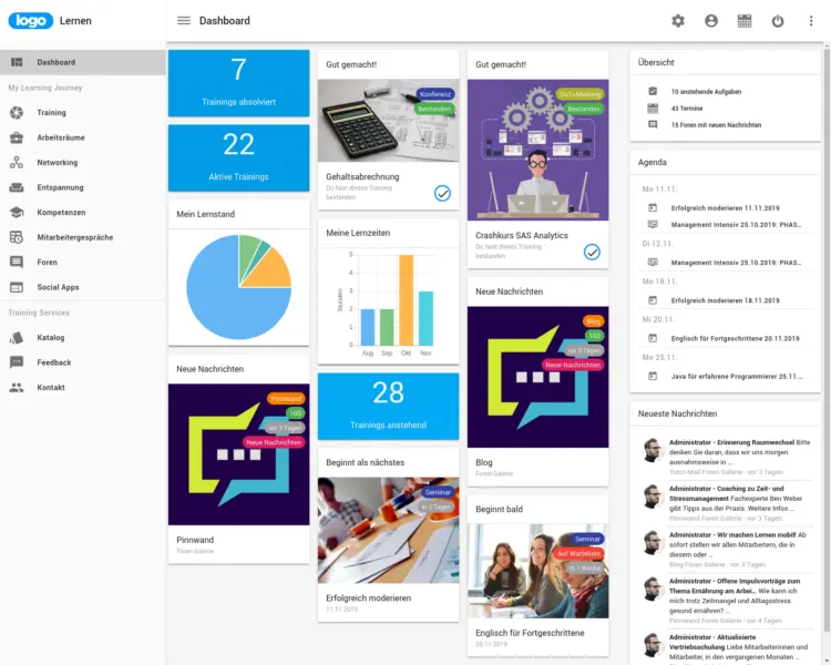 Das gilt für alle Inhalte und Medien, mit denen Ihre User auf der Plattform lernen bzw. arbeiten: Im Microlearning, im Online-Kurs und im Lernspiel, im Webinar und im Blended Learning.